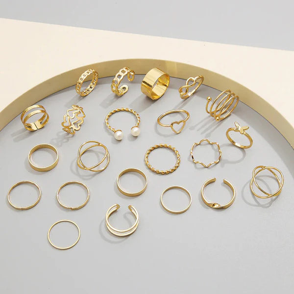 Women Gold Plated Contemporary Stackable Rings Set of 23